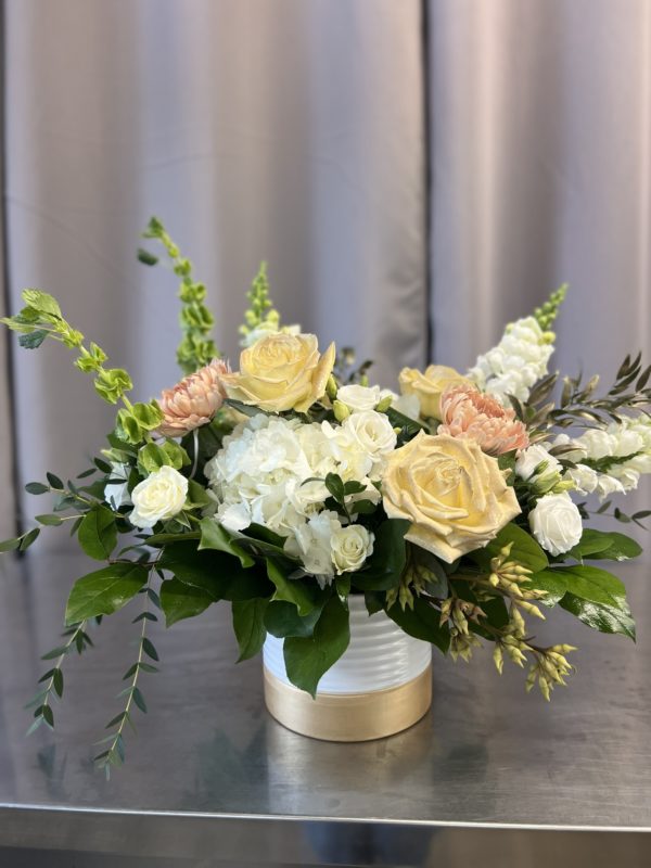 Kindly note that ongoing supply chain challenges may affect the availability of specific flowers, colors, and varieties. Due to limited and inconsistent imports, we cannot guarantee all products will arrive as planned. Consequently, flower or container substitutions might be required. Rest assured, our designers will select the finest options available and maintain the design’s style, theme, and integrity. Any substitutions will only involve equal or higher-priced elements.