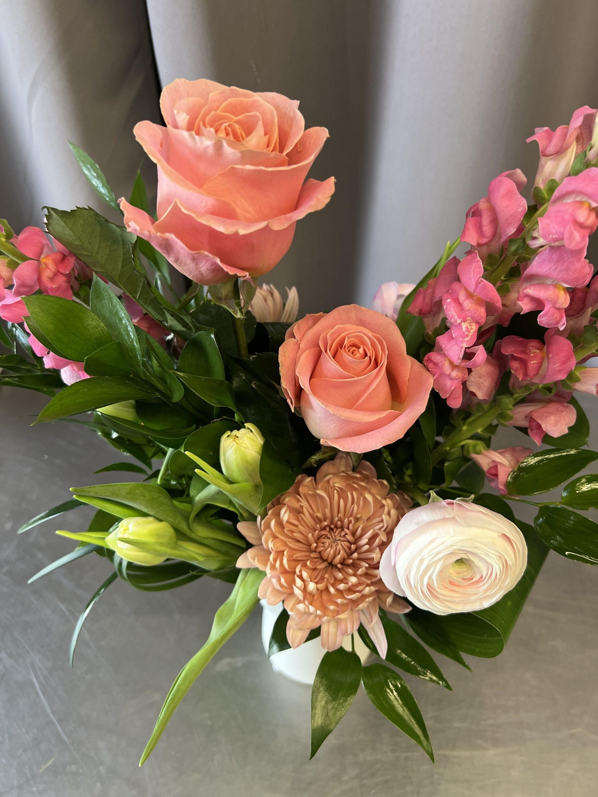 Kindly note that ongoing supply chain challenges may affect the availability of specific flowers, colors, and varieties. Due to limited and inconsistent imports, we cannot guarantee all products will arrive as planned. Consequently, flower or container substitutions might be required. Rest assured, our designers will select the finest options available and maintain the design’s style, theme, and integrity. Any substitutions will only involve equal or higher-priced elements.
